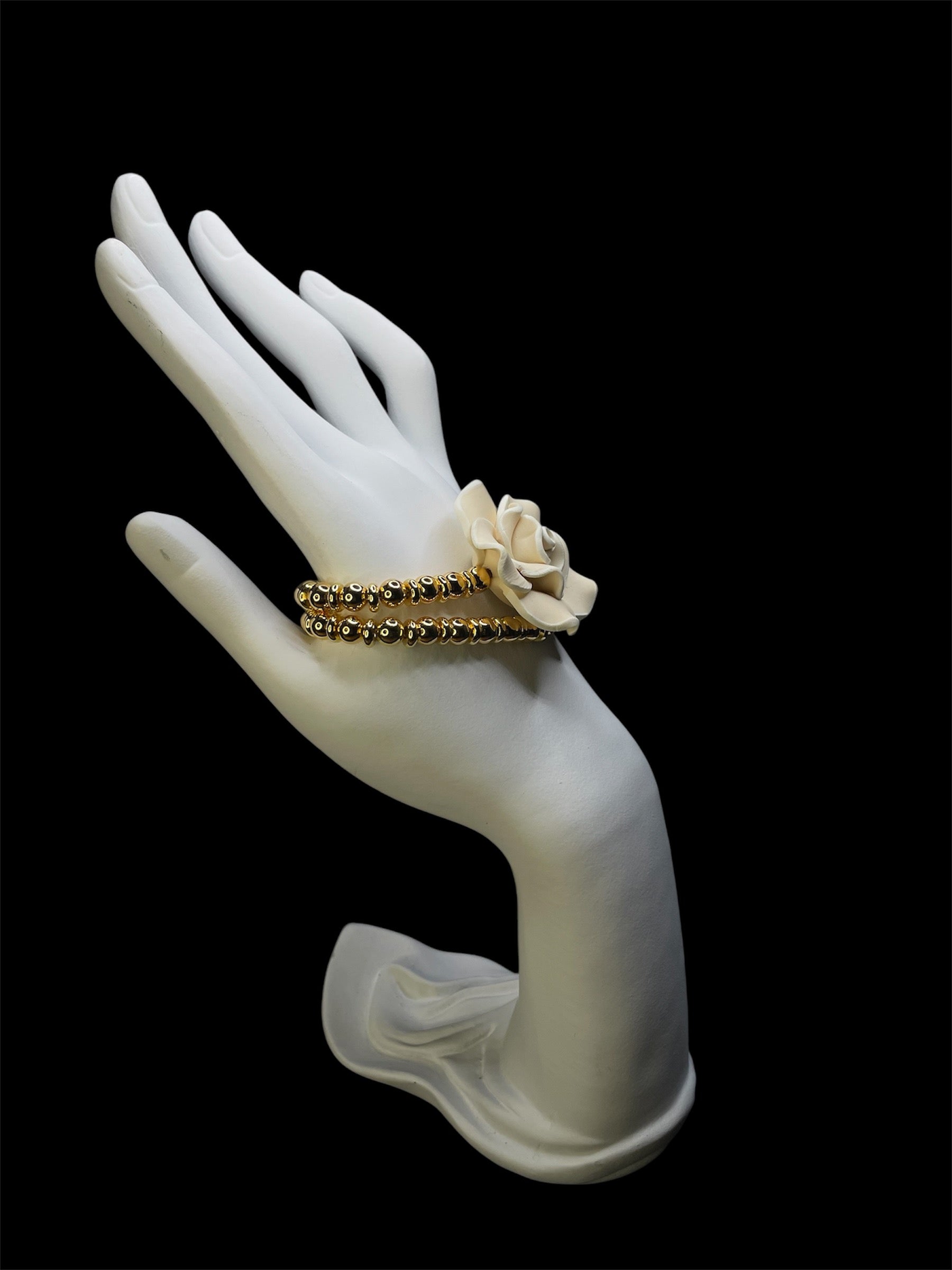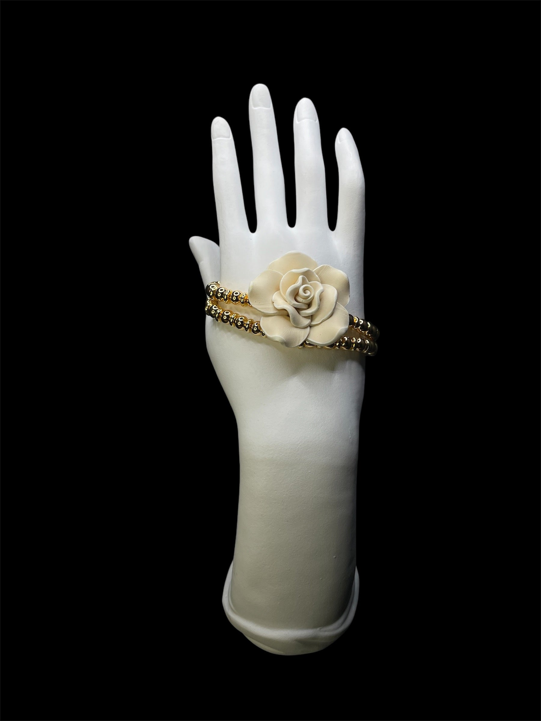 Add a touch of elegance with this 14K Gold Blossomed Rose Bracelet. The delicate flowers and subtle colors bring a charming grace to any outfit. Perfect for any occasion, this bracelet is sure to highlight your unique style. (Seriously, it's a must-have!)