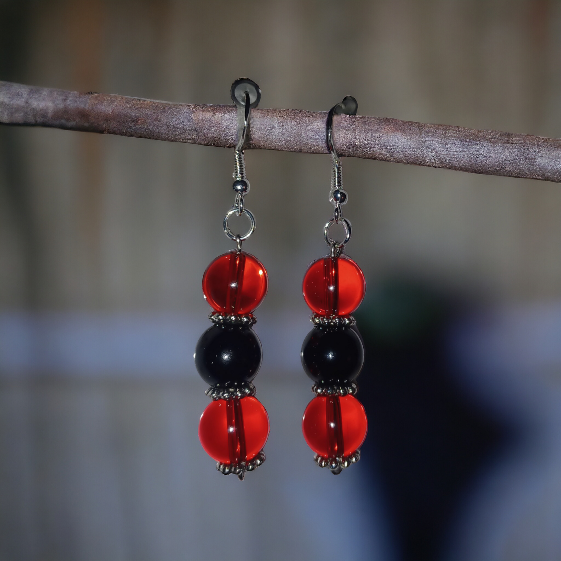 Elevate your style with our stunning Black & Red Glass Earrings. These earrings add a pop of color to any outfit and are the perfect accessory for any occasion. Handcrafted with care and attention to detail, these earrings will elevate your look and make you feel confident and fashionable.