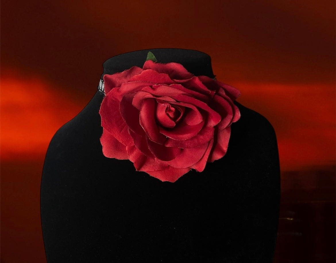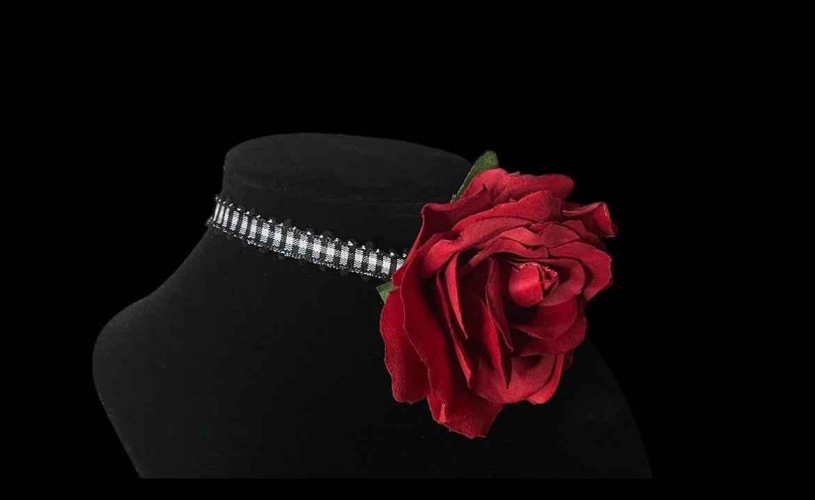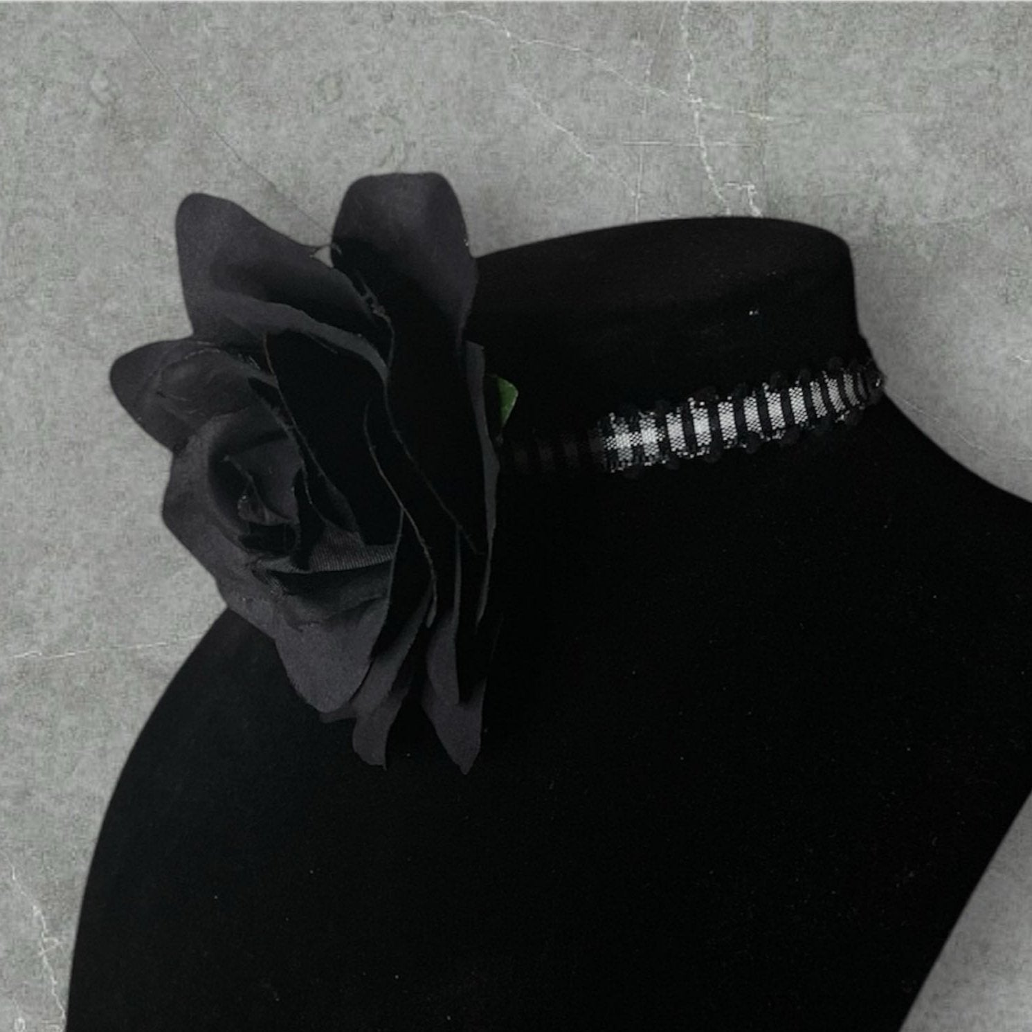 Upgrade your style with our Black Rose Chocker. This elegant accessory adds a touch of sophistication to any outfit. The beautiful black rose design is perfect for any occasion and truly makes a statement. Elevate your look and feel confident in our Black Rose Chocker.
