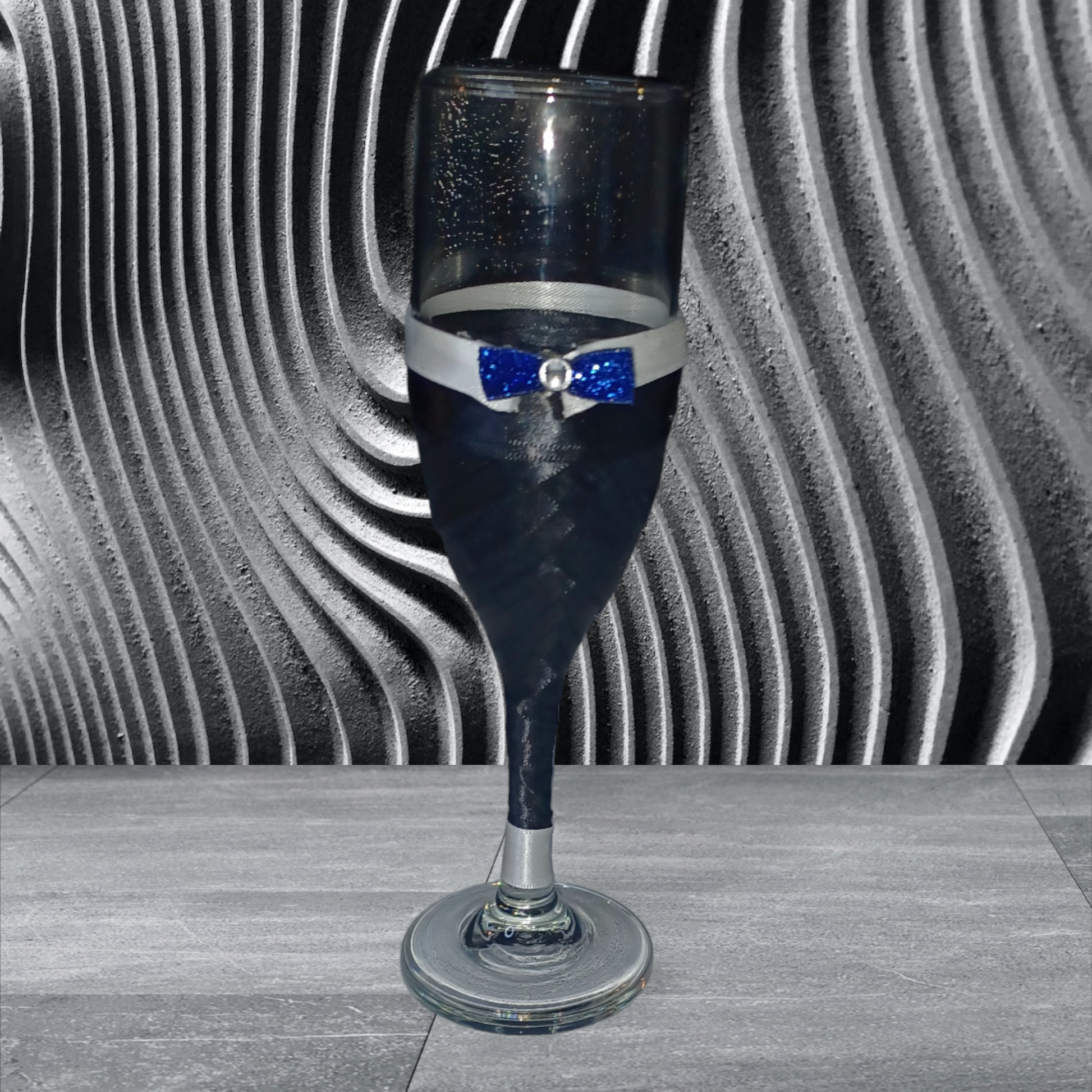 Experience luxury and elegance with our Tuxedo Blue Champagne Glass. Made with precision and finesse, this glass exudes sophistication. Its sleek design enhances the bubbly, while the blue tint adds a touch of uniqueness. Perfect for any special occasion, celebrate in style with our Tuxedo Blue Champagne Glass.
