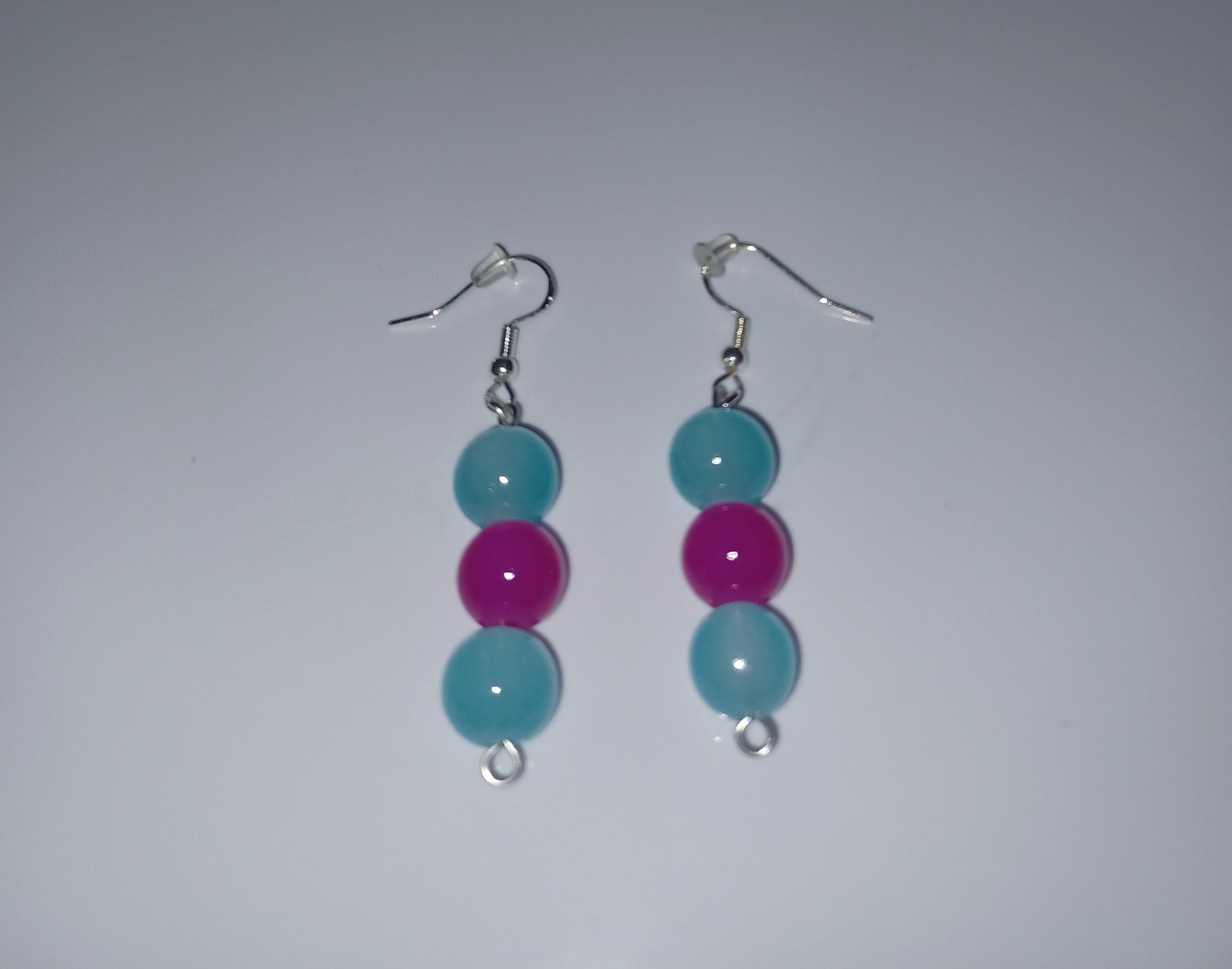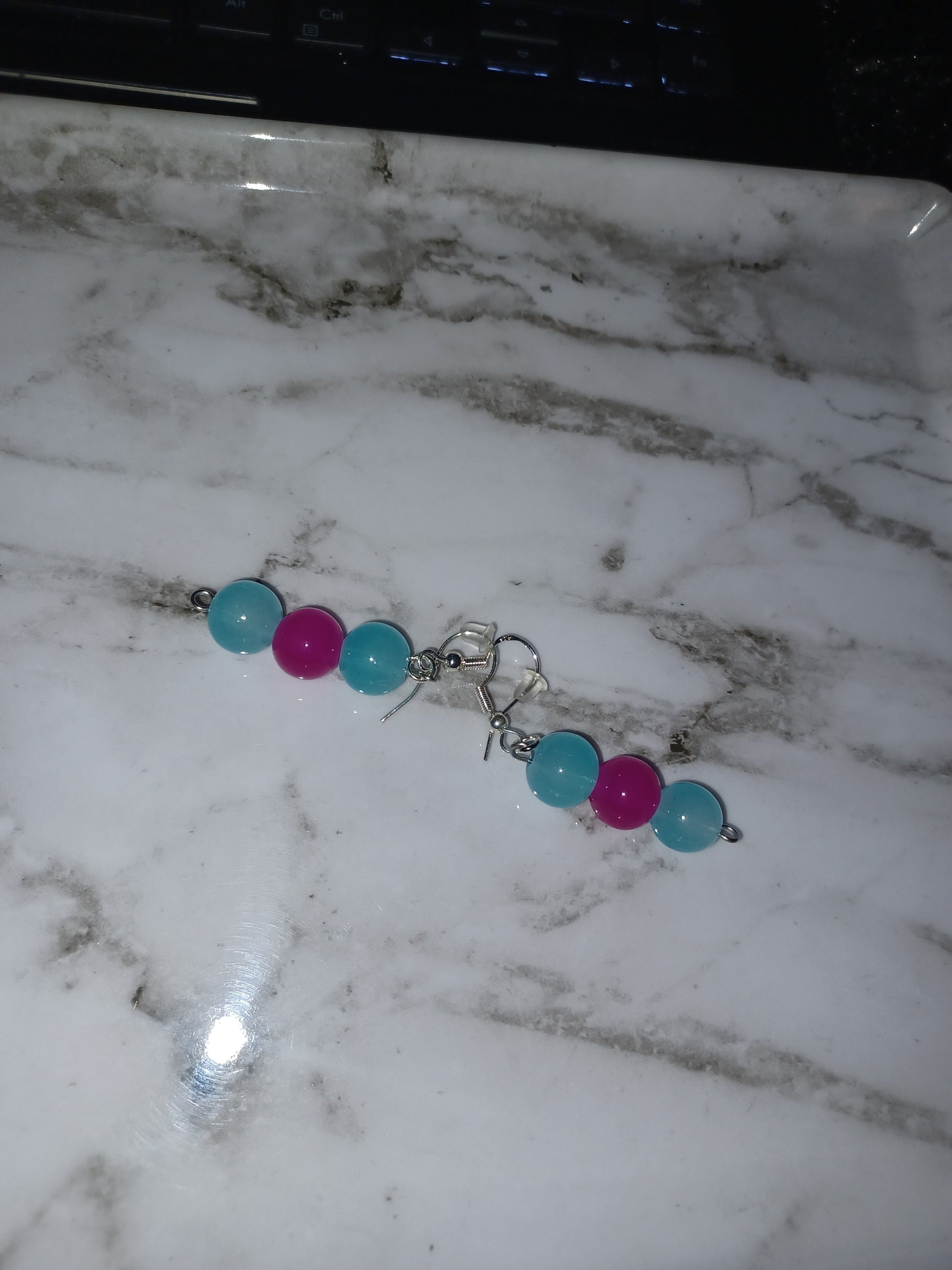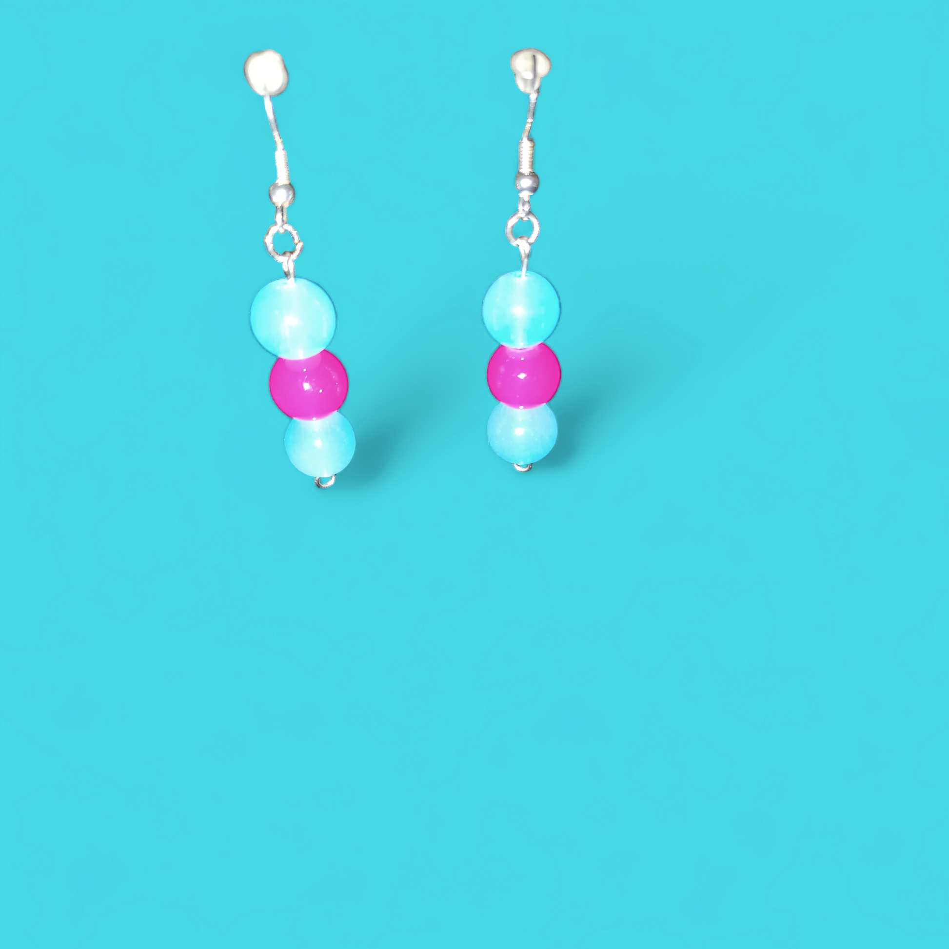Upgrade your jewelry collection with these stunning Glass Hot Pink & Blue Earrings! Handcrafted with care and attention to detail, these earrings are a perfect combination of elegance and trendiness. Add a pop of color to your outfit and feel confident and stylish wherever you go.