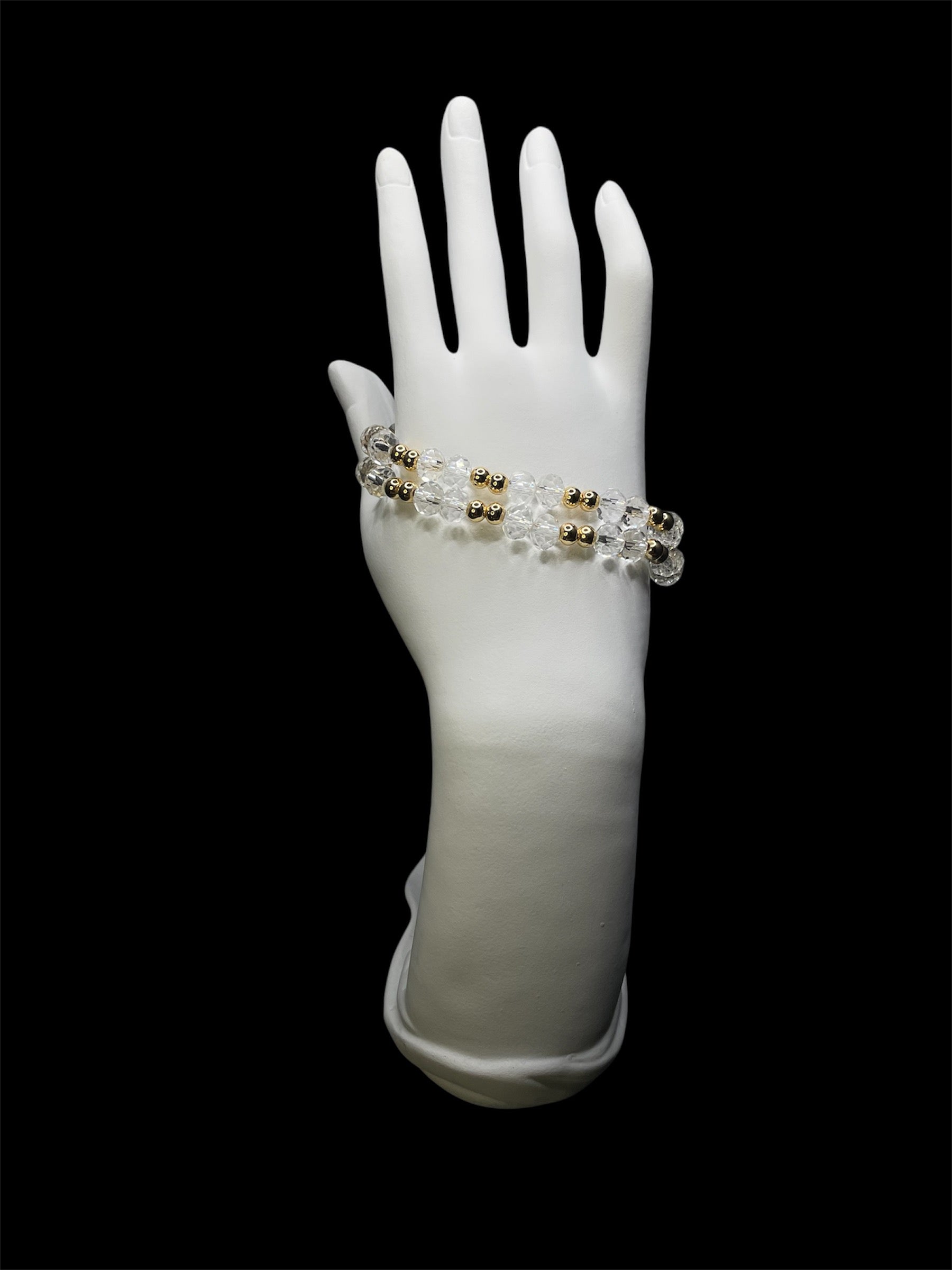 Unleash your daring side with our Gold Crystal Bracelet! Made with shimmering crystals and luxurious gold, it adds a touch of sparkle and sophistication to any outfit. Take a risk and elevate your style with this bold accessory.