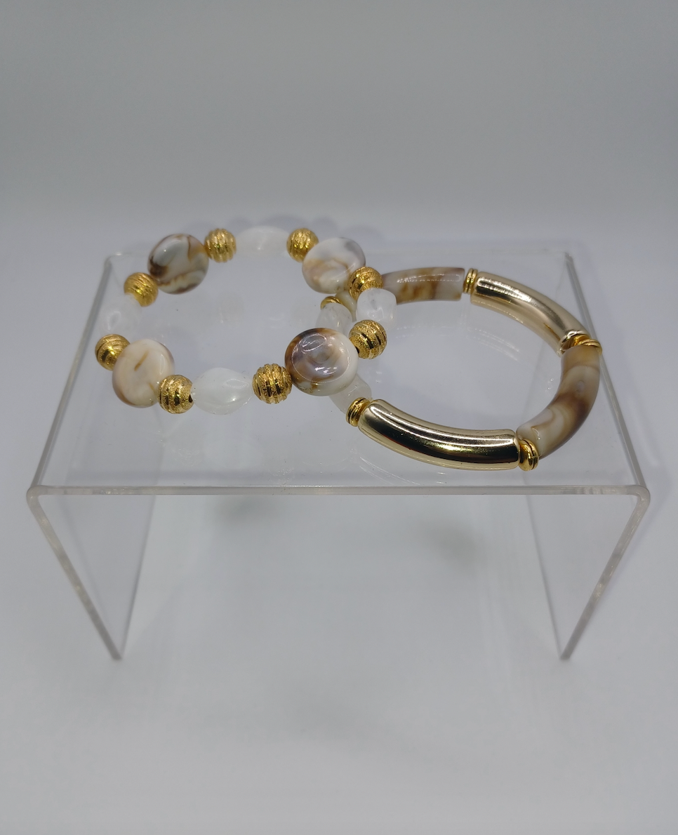 Add a touch of elegance to any outfit with our Gold & White bracelet. Made with quality materials, this bracelet is a perfect addition to your jewelry collection. The golden accents and white stones make it versatile for both casual and formal wear. Elevate your style with our Gold & White bracelet.