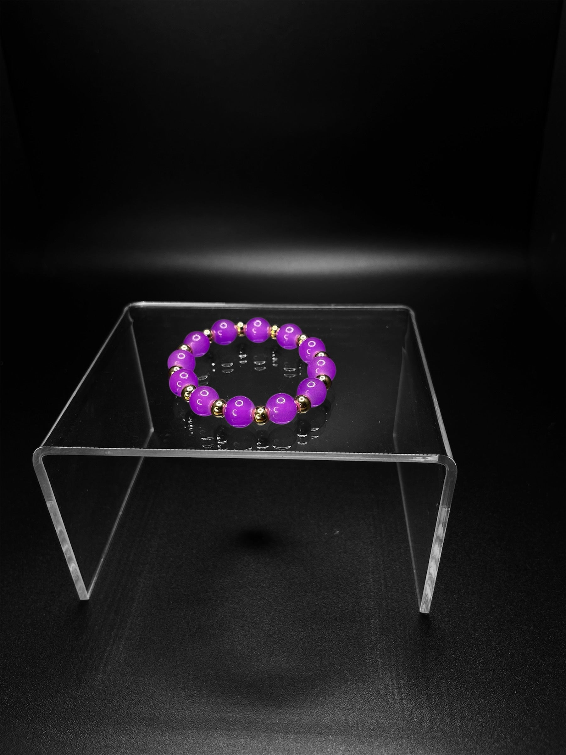 This funky Grape and Gold Bracelet is sure to add a touch of whimsy to any outfit. Crafted with luscious grapes and shimmering gold, this playful piece is perfect for those who don't take themselves too seriously. (Bonus: it's also a fun conversation starter!)