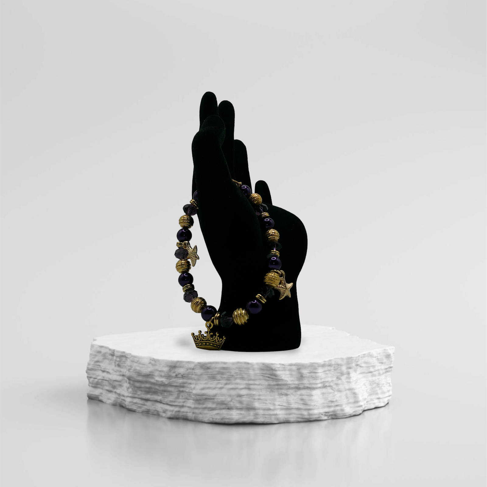 Add a touch of luxury to your everyday look with our stunning Purple & Gold bracelet. The rich purple color paired with the elegant gold accents creates a timeless and sophisticated piece. Elevate your style with this eye-catching bracelet.