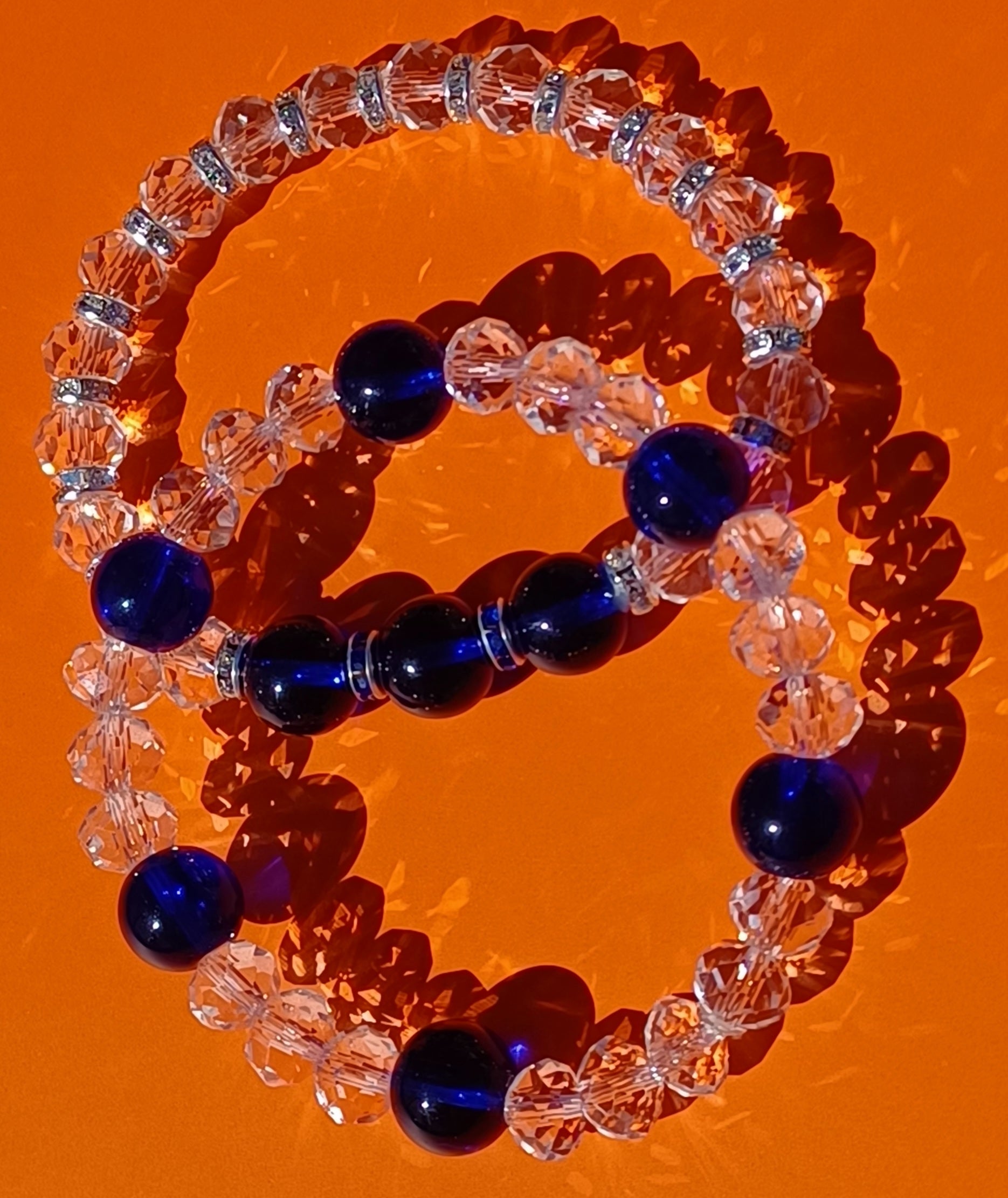 This elegant Blue Glass & Crystal Bead Bracelet is the perfect addition to any outfit. The beautiful combination of blue glass and crystal beads adds a touch of sophistication and glamour to your look. With its versatile design, this bracelet is perfect for any occasion and will make you stand out from the crowd. Elevate your style with this stunning bracelet.